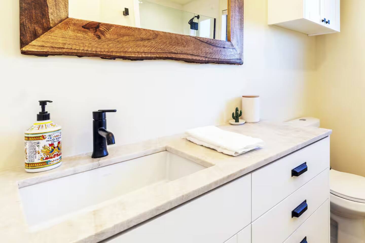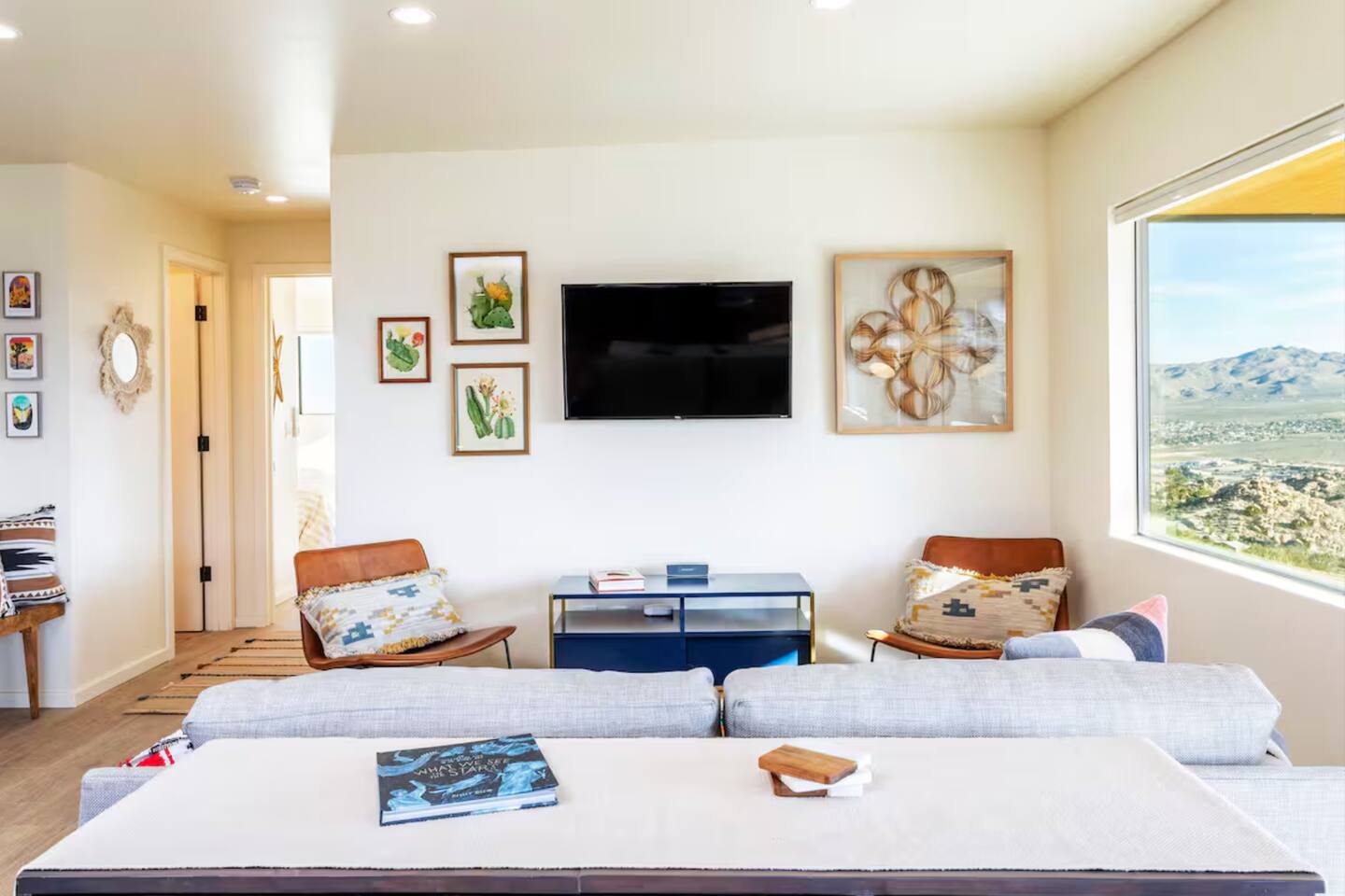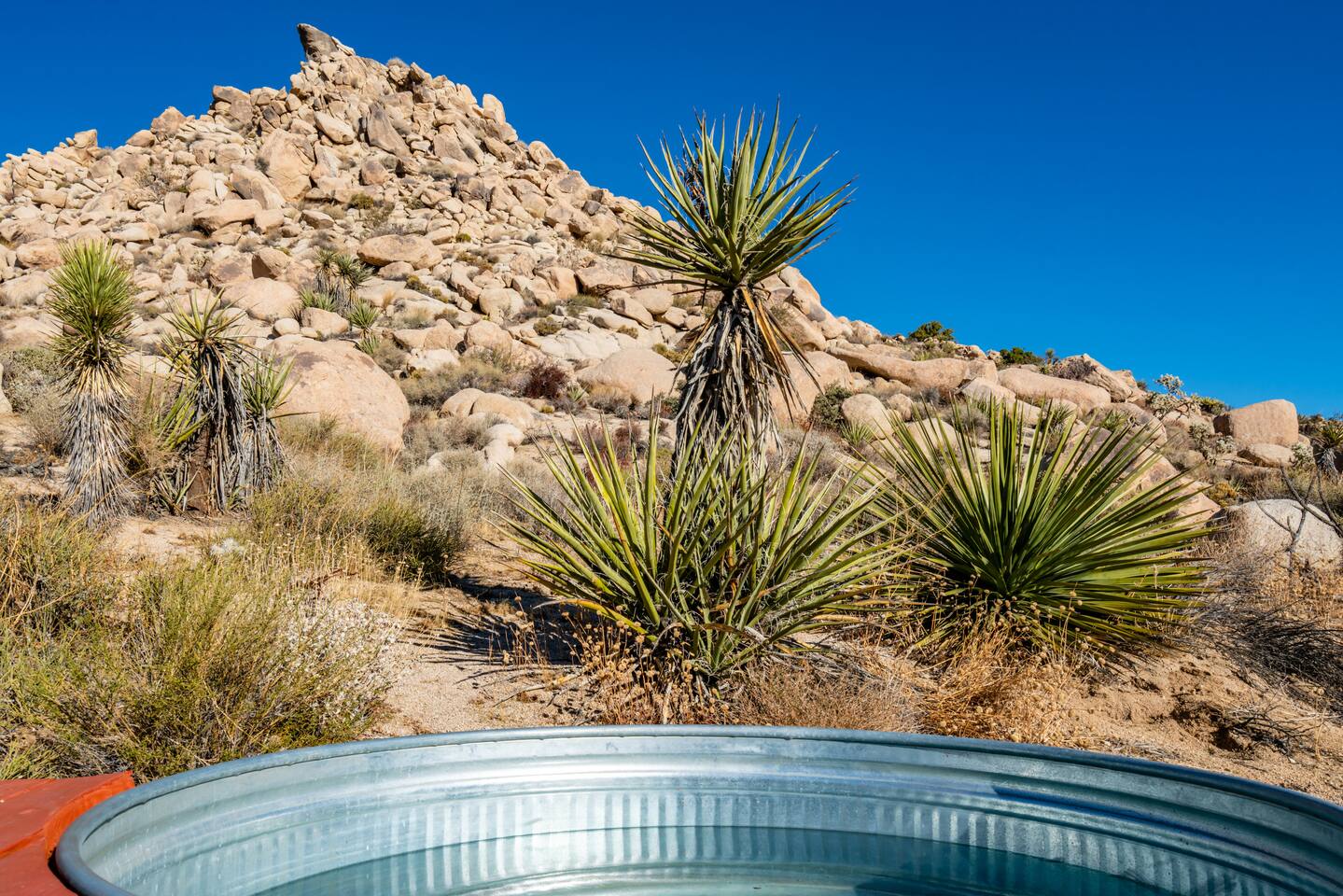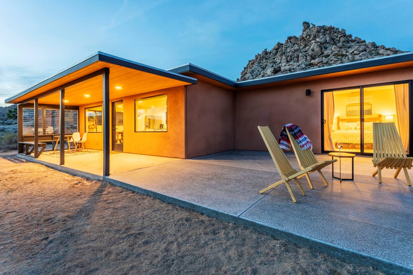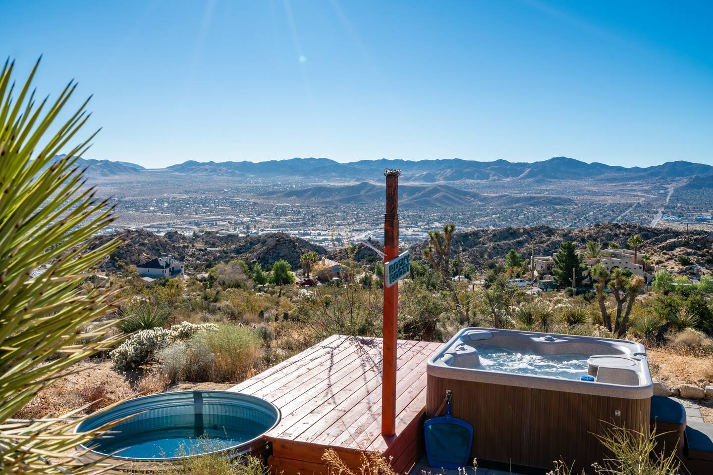 This secluded haven offers the perfect blend of rustic charm and modern comfort. Relax and rejuvenate amidst breathtaking sweeping views on 5 private acres, complete with a massive boulder mountain for adventurous exploration. • Starlink internet! +150mbps • New king bed! • Hot tub • Cowboy tub (summer only) • Wooden deck for sunbathing • Giant private boulder mountain • Fire pit • Covered patio w/ outdoor dining • Gorgeous sweeping views • Mini-split heating/AC system Permit# STVR 13-25